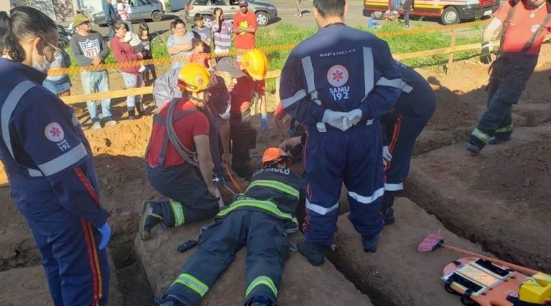 João Paulo ficou quase 1 hora preso dentro de um buraco de 5 metros de profundidade em um uma obra, no Jardim Munique