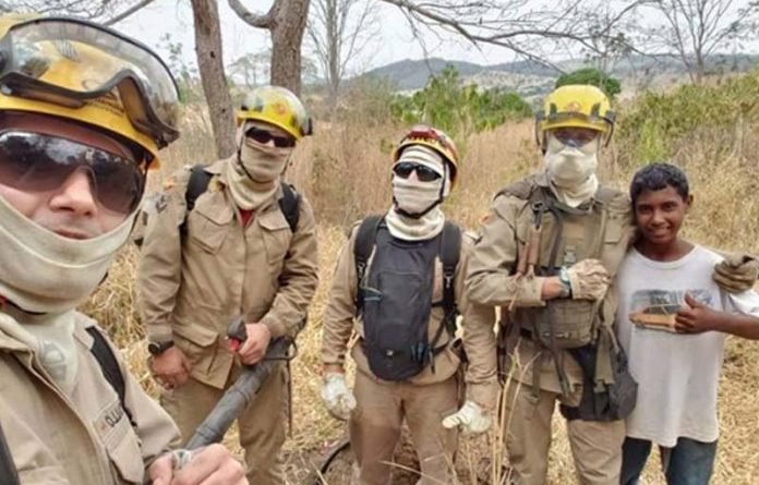 Garoto serve água e emociona bombeiros durante incêndio na mata