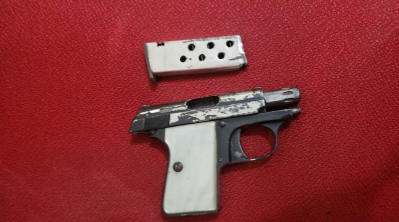 Com os três indivíduos foi encontrado uma arma de fogo (pistola) desmuniciada , descarregada no interior do veículo.