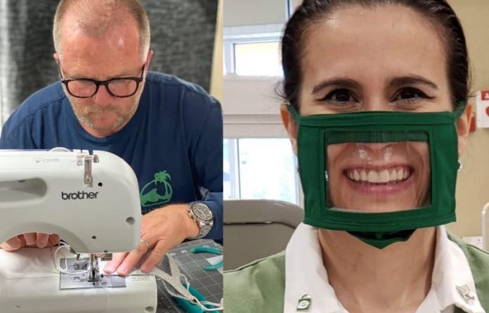 Um médico que ficou surdo após uma hemorragia cerebral está costurando máscaras transparentes para ajudar na comunicação de pessoas com deficiência auditiva, como ele.