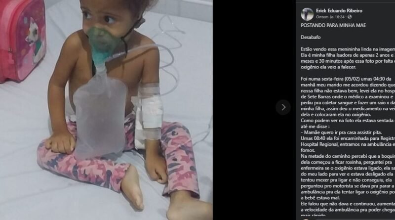 Read MoreDe acordo com a mãe, enfermeira não conseguiu fazer com que equipamento de oxigênio funcionasse durante a viagem. Prefeitura do