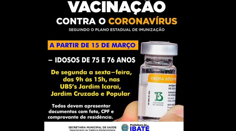 Vacinação para idosos de 75 e 76 anos começa na próxima segunda-feira em Ibaté