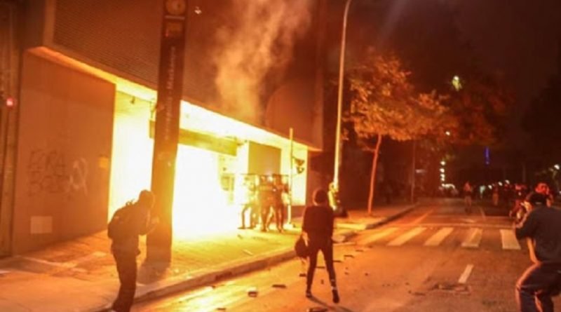 SÃO PAULO-Em ato contra Bolsonaro manifestantes ateiam fogo em agência bancária