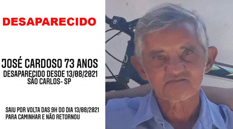 Read MoreUm idoso desapareceu em São Carlos e família busca por notícias, José Cardoso de 73 anos saiu de casa e