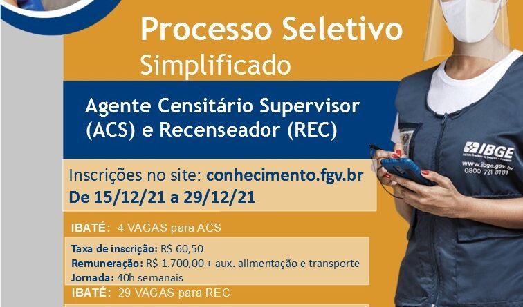 A Prefeitura de Ibaté informa que o Instituto Brasileiro de Geografia e Estatística (IBGE) abriu nesta quarta-feira (15), as inscrições
