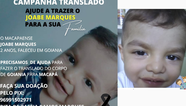 Criança de 2 anos faleceu em Goiânia e a família não tem condições de fazer o translado para a sua