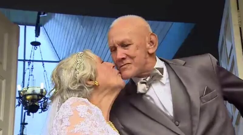 Provando que o amor não tem idade, Paulo Leite, de 79 anos, e Andrina, de 84, se casaram na manhã