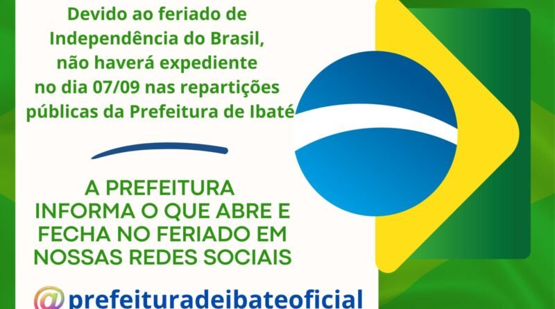 Read MoreNesta quinta-feira, 7 de setembro, feriado, “Dia da Independência do Brasil”, não haverá expediente nas repartições públicas da Prefeitura de