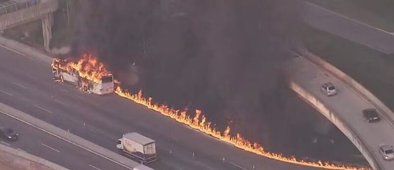Ônibus pega fogo na rodovia Anhanguera em São Paulo