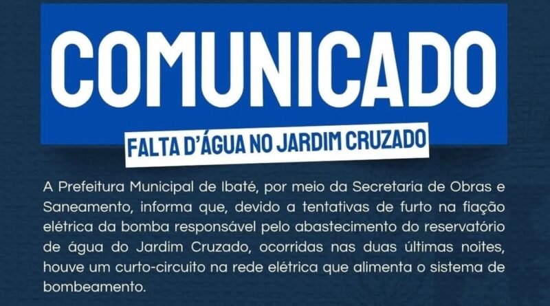 A Prefeitura Municipal de Ibaté, por meio da Secretaria de Obras e Saneamento, informa que, devido a tentativas de furto