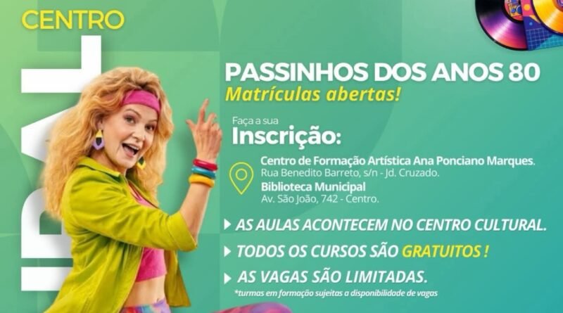 Matrículas abertas para o Curso de Passinhos dos Anos 80,no Centro Cultural