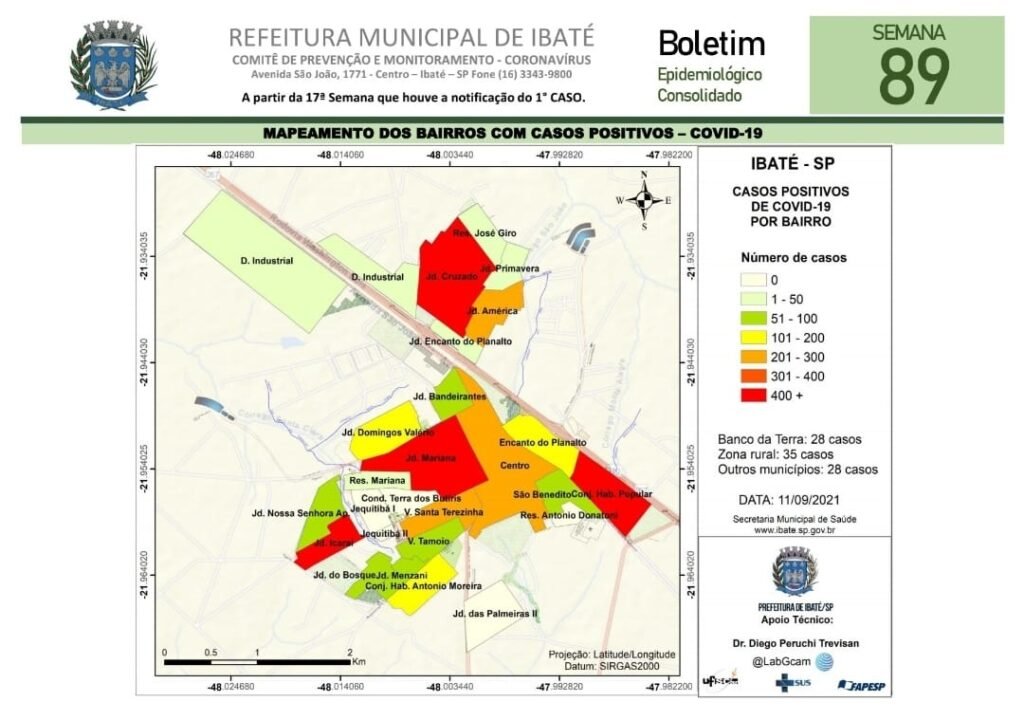 A Secretaria Municipal de Saúde de Ibaté, através da Vigilância Epidemiológica e do Gabinete de Prevenção e Monitoramento do Coronavírus, divulgou nesta segunda-feira, 13 de setembro, o Boletim Epidemiológico Consolidado da 89ª Semana sobre a situação da Covid-19, em Ibaté.