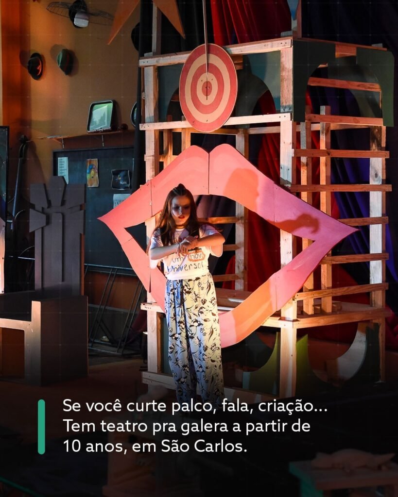 O curso de Teatro vai trabalhar expressão corporal e voz, improvisação e jogos teatrais e criação cênica e espetáculo final e também será ministrado no Centro da Juventude Lauriberto José Reyes a partir de 30/06. Para a Turma 1 as aulas acontecerão de segunda e quarta das 18h30 às 21h30 e para a Turma 2 de terça e quinta das 18h30 às 21h30. A faixa etária estipulada é de 10 a 17 anos.