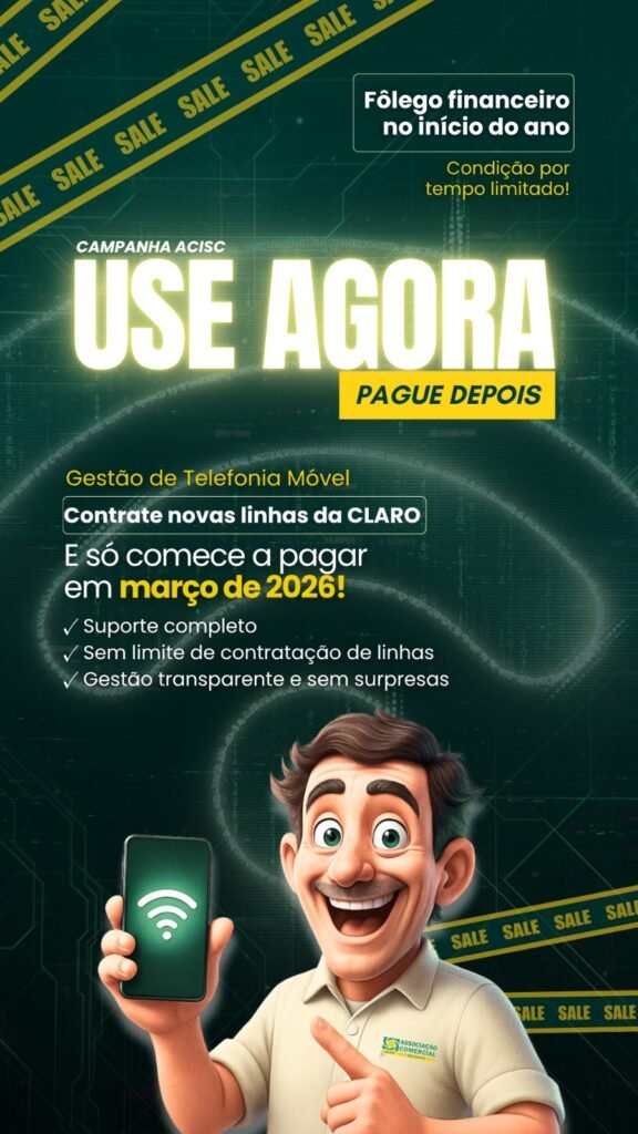 A Associação Comercial e Industrial de São Carlos (ACISC) lançou uma nova campanha voltada aos empreendedores da cidade: “Use Agora, Pague Depois”, iniciativa que oferece fôlego financeiro no início do ano e condições exclusivas para quem contratar novas linhas de telefonia móvel da Claro.