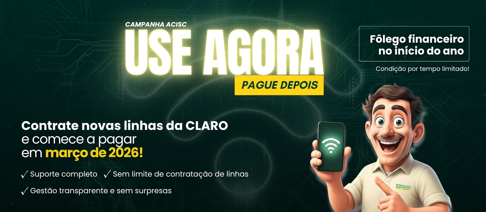 A Associação Comercial e Industrial de São Carlos (ACISC) lançou uma nova campanha voltada aos empreendedores da cidade: “Use Agora, Pague Depois”, iniciativa que oferece fôlego financeiro no início do ano e condições exclusivas para quem contratar novas linhas de telefonia móvel da Claro.