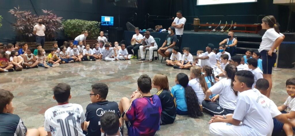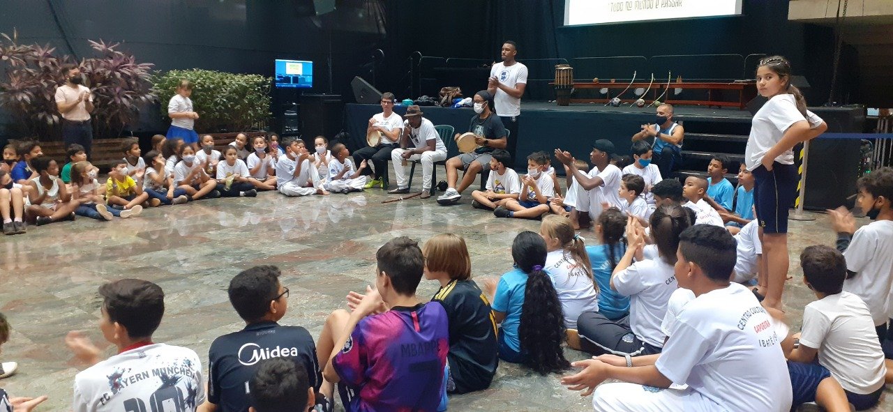 Durante a aula aberta, os alunos participaram da atividade “Tempo Brincante” com a Escola Manifesto Capoeira.