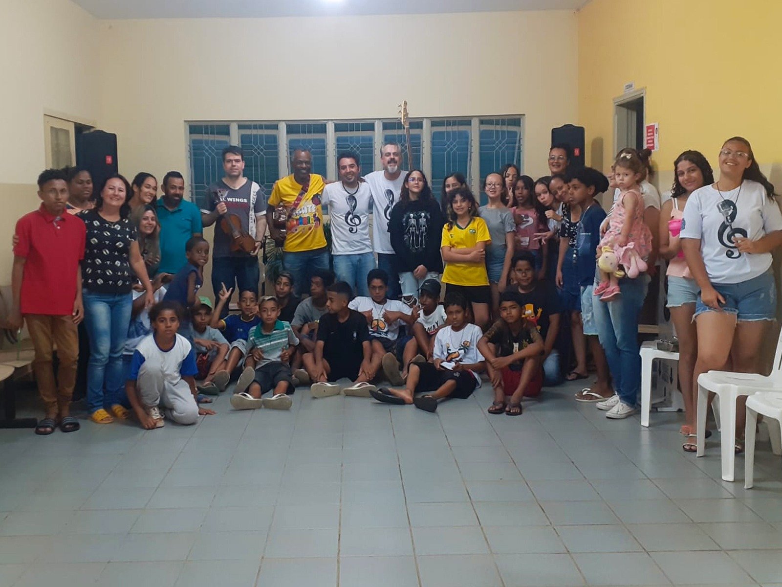 Tanto os alunos de percussão, violão, violino, canto e técnicas vocais, tiveram um momento de imersão musical na aula inaugural com os professores, André de Souza (Canto), Ricardo Finazzi (violão e viola), Misael Sena (violino) e Felipe Cortes (percussão).