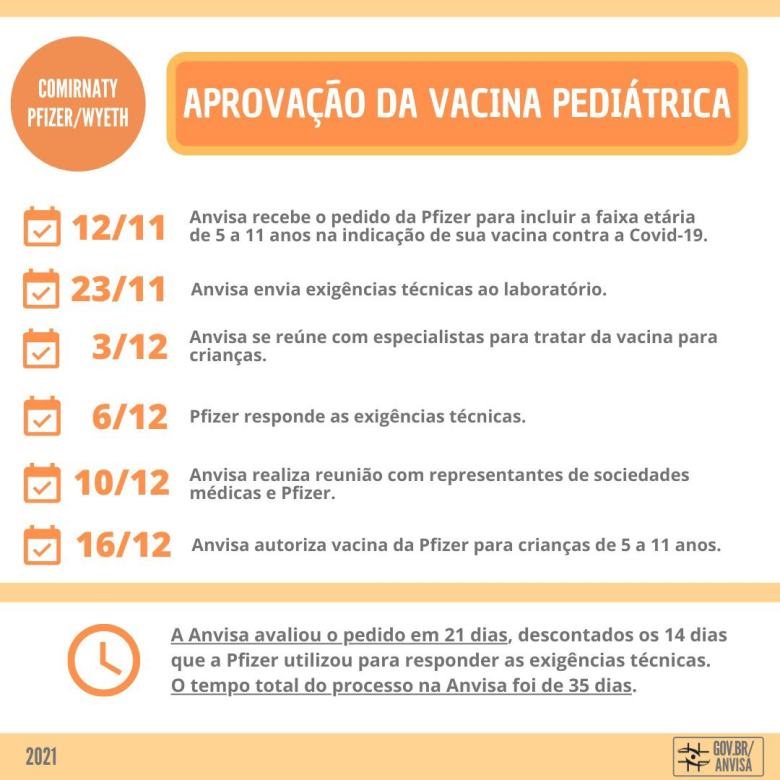 De acordo com Gustavo Mendes, gerente-geral de medicamento da Anvisa, a segurança do imunizante e o número de infectados com Covid-19 nessa faixa etária foram determinantes para a aprovação, que será publicada hoje em edição extraordinária do DOU (Diário Oficial da União).