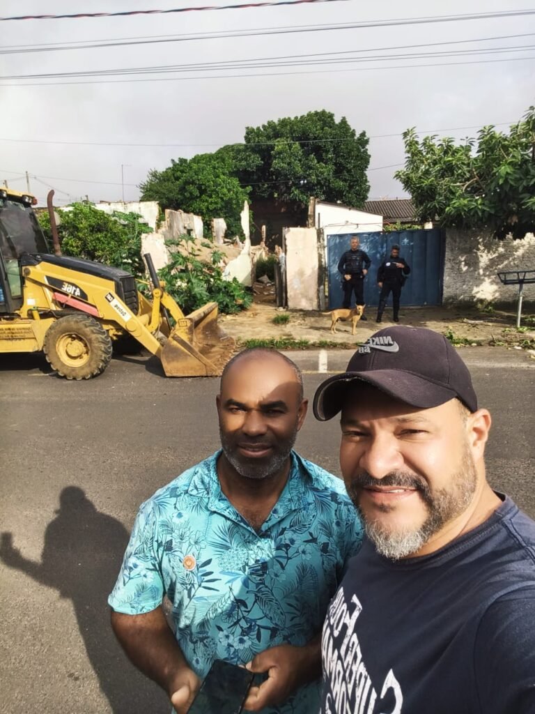 O vereador esteve no local acompanhando o início dos trabalhos ao lado do secretário municipal de Obras, Ivan Lins, responsável pela execução do serviço, que compreende a limpeza do terreno e a demolição da estrutura existente.