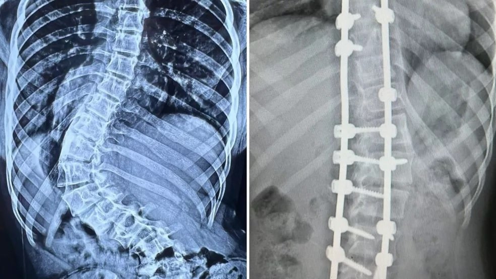 Só que o procedimento era urgente: em apenas 5 meses, a curvatura da coluna de Agatha evoluiu de 75 para 101 graus, o que colocou sua família em estado de alerta.