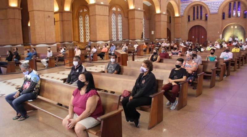 De acordo com Santuário Nacional, 154 pessoas acompanharam a celebração das 8h; no último sábado (3), ministro Nunes Marques, do Supremo Tribunal Federal (STF), expediu liminar que proíbe estados e municípios de impedirem completamente celebrações religiosas presenciais.