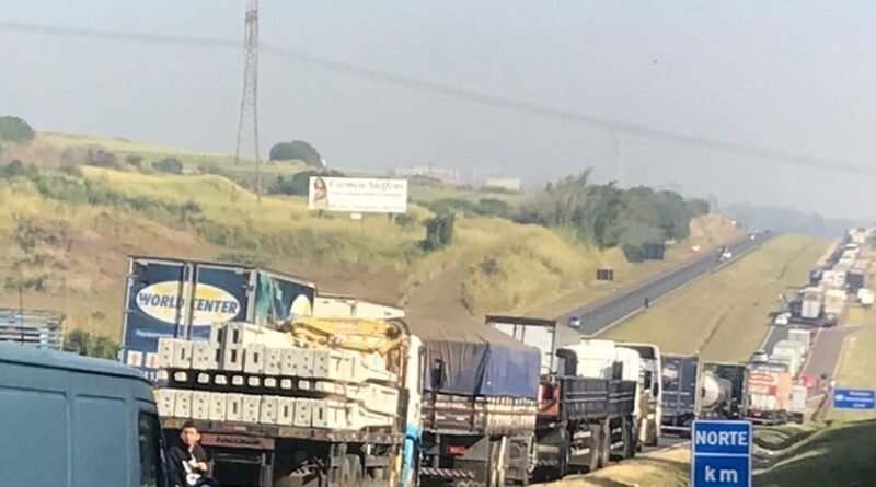 Caminhoneiros ocuparam a faixa da direita da Rodovia Washington Luís (SP-310), em Rio Claro, na manhã desta quinta-feira (9). Os motoristas começaram a deixar o local por volta das 9h e o trânsito na região flui normalmente, informou a Polícia Rodoviária.