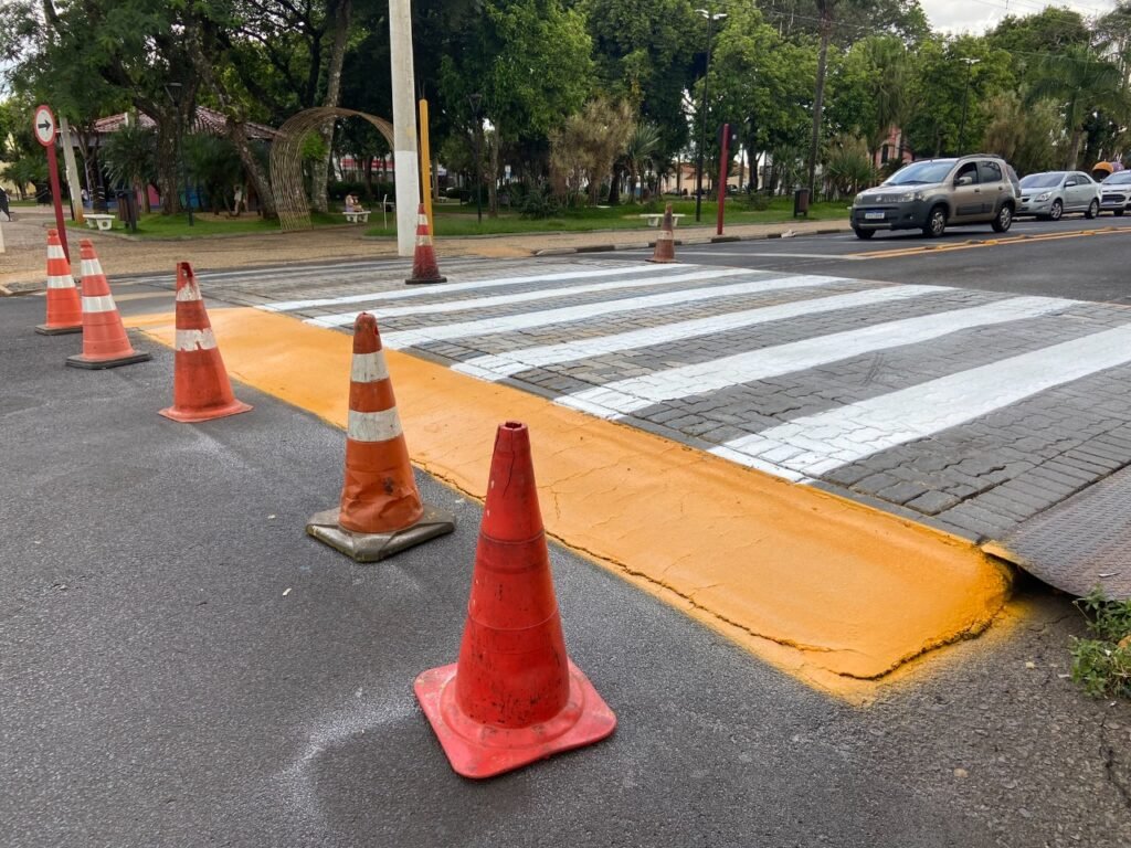 O serviço vem sendo intensificado nos últimos dias, após a execução do recape asfáltico, que também contemplou diversas vias da cidade, objetivando a melhoraria e orientação do tráfego de veículos, aumentando a percepção de motoristas e oferecendo mais segurança viária aos usuários das faixas de pedestres.