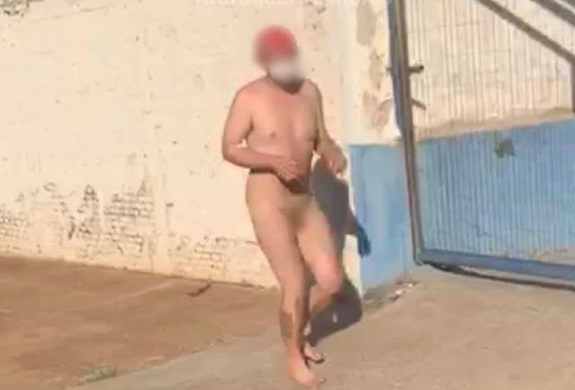 De acordo com populares, o homem estava totalmente nu, porém se protegendo da Covid-19, sem roupas, mas utilizando máscara.