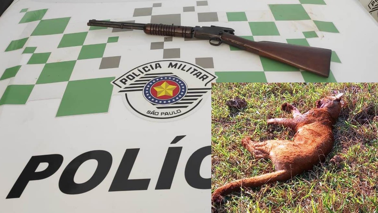 Uma mulher forneceu o armamento (uma espingarda Winchester 22 Rossi), e um indivíduo teria cometido o delito, tipificado como crime contra a fauna, por ser uma conduta que lesa o meio ambiente.