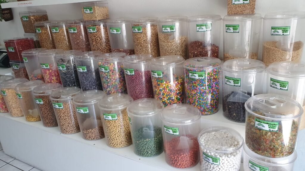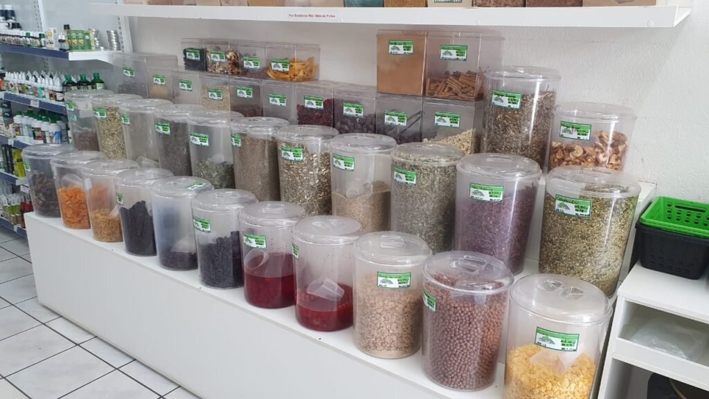 Mais de cem tipos de chás, mais de cem tipos de temperos, Grãos, Farinhas, castanhas , capsulas, produtos sem glúten, produtos sem lactose, produtos Vegano, produtos Fini para a criançada e muito mais.