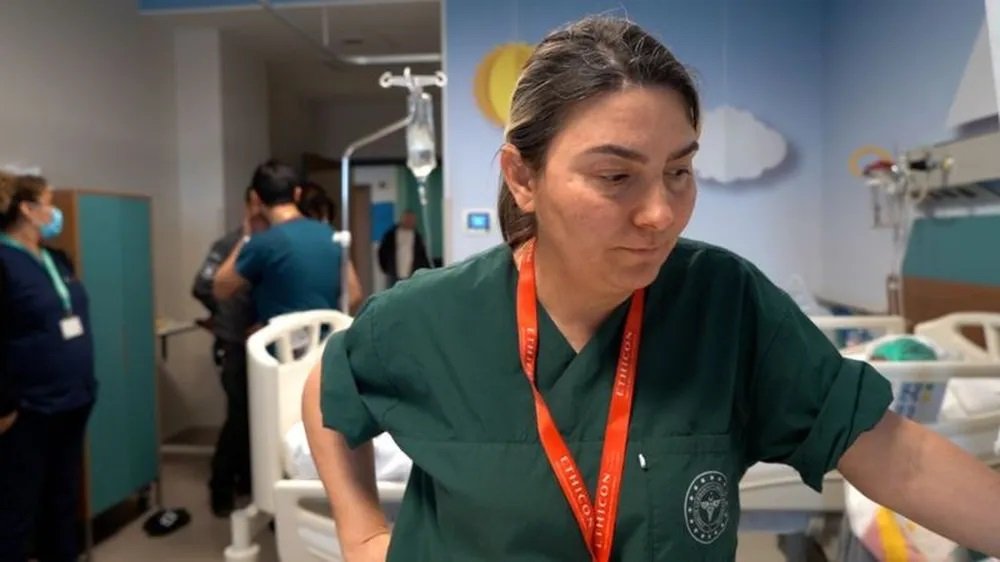 A cirurgiã pediátrica Ilknur Banlicesur diz que muitas crianças não conseguem falar por estarem em choque — Foto: BBC
