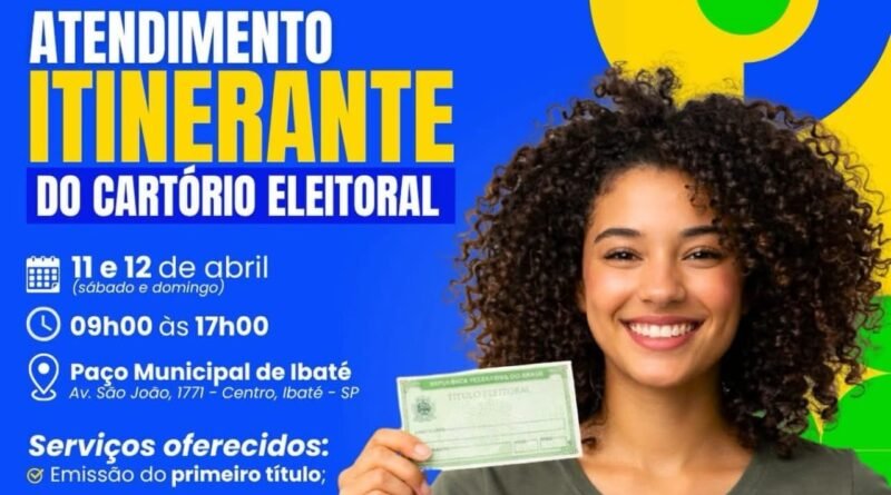 A Prefeitura de Ibaté, por meio da Secretaria de Governo, informa que neste fim de semana (11 e 12 de abril), o Cartório Eleitoral estará realizando atendimento itinerante no município, facilitando o acesso da população a serviços essenciais. 🗳️