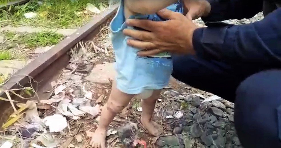 Bebê de um ano deixado sozinho em linha férrea é resgatado, no interior de SP
