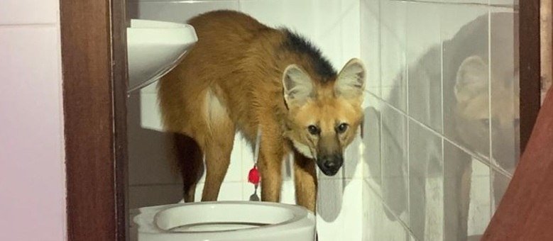 Um lobo-guará assustou moradores do Condomínio Alphaville, em Nova Lima, na região metropolitana de Belo Horizonte, neste domingo (1º), ao invadir um banheiro de uma casa.