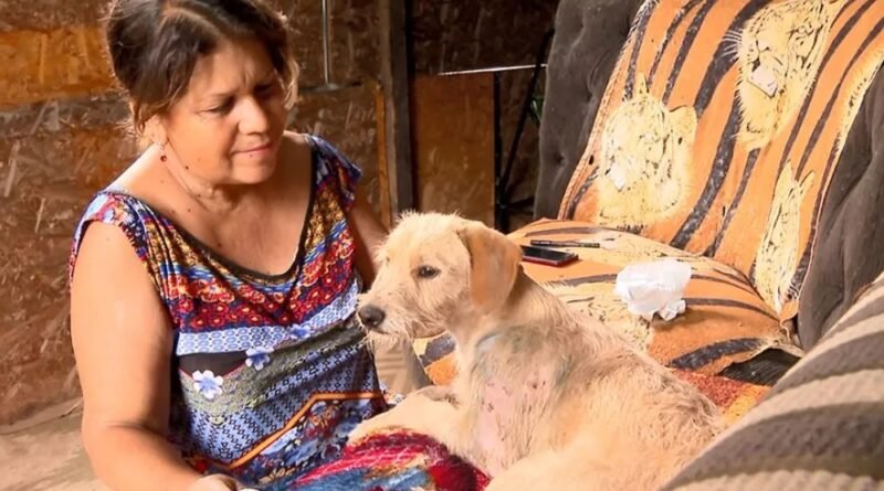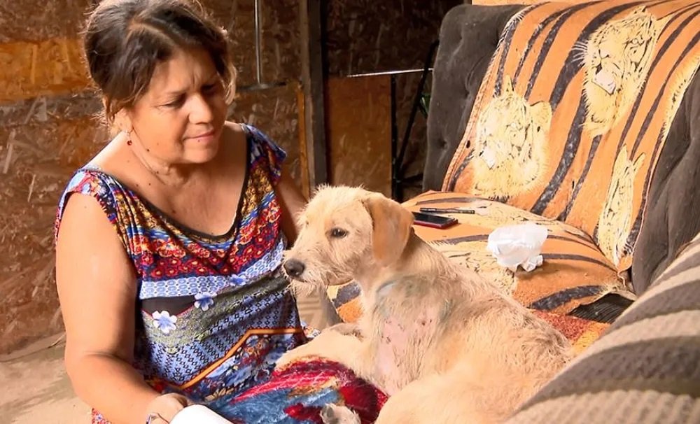 O vira-lata Donny vivia na rua e foi adotado há alguns meses por uma família de um acampamento de sem teto. “Foi mais uma vítima do abandono. Uma família muito amorosa acolheu. Eu ajudo com a ração e eles ajudam abrigando”, disse a voluntária Adriana Pereira.