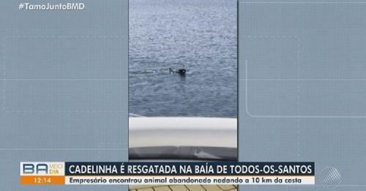 Uma cadela foi resgatada por um empresário, ao ser flagrada nadando na Baía de Todos-os-Santos, a 10 km da costa. O animal, que foi apelidado como Zaia, foi “adotado” pelo homem, que foi conquistado pelo seu jeito dócil.