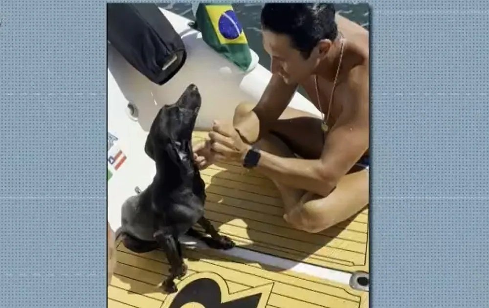 Cadela é resgatada em alto mar na Baía de Todos-os-Santos; animal estava a 10 km da costa e foi encontrada por empresário