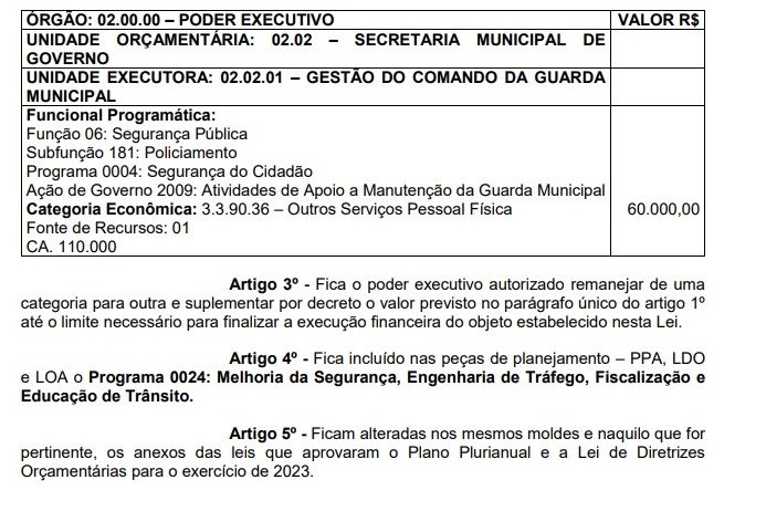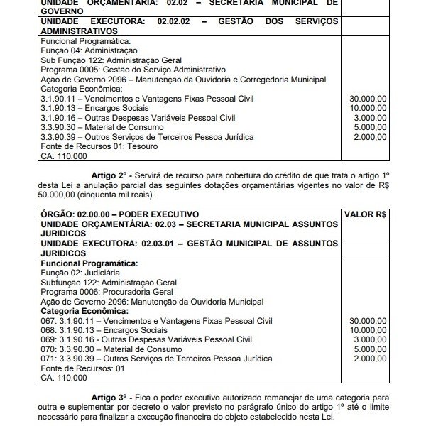 reais), destinados para atender as despesas da ouvidoria e corregedoria municipal, conforme