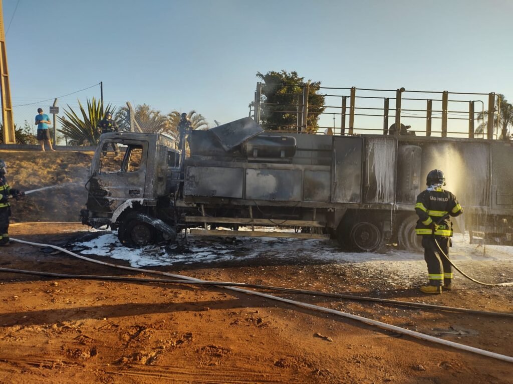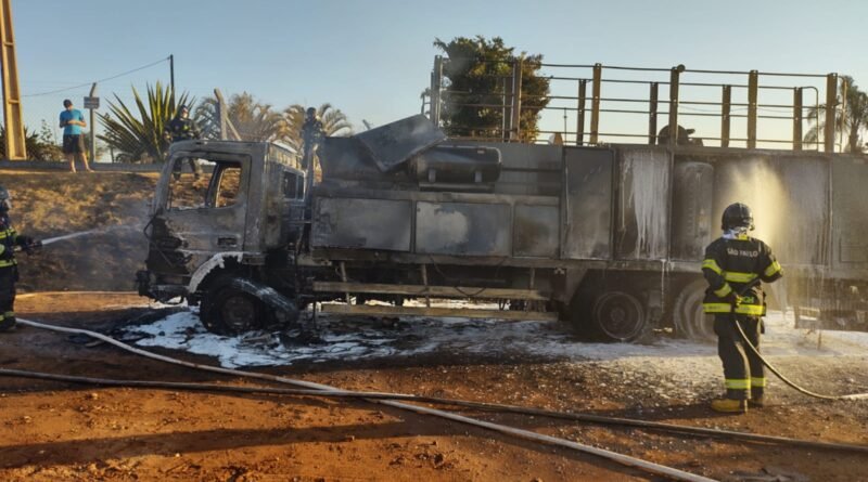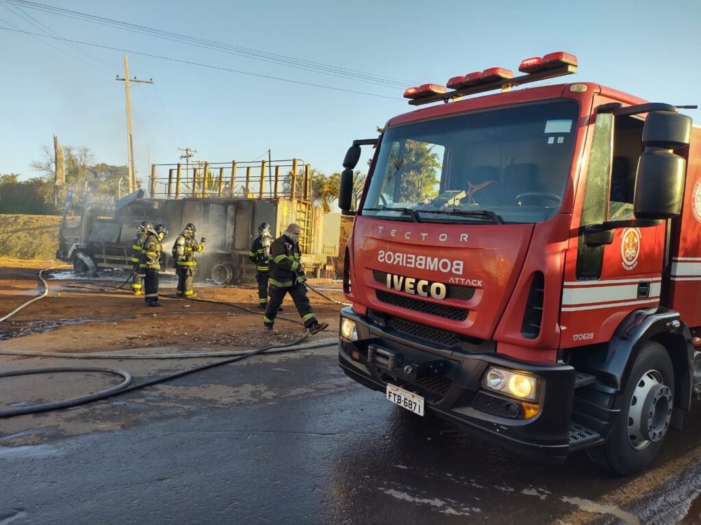 Caminhão é destruído por incêndio na antiga estrada da Babilônia em São Carlos