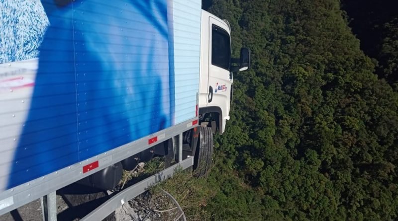 Caminhão fica pendurado em penhasco após falha no freio