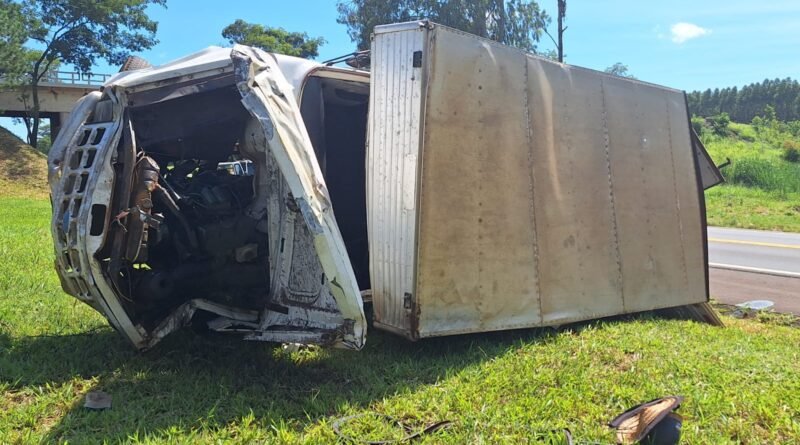 Caminhão Tomba e Motorista fica ferido em rodovia de São Carlos