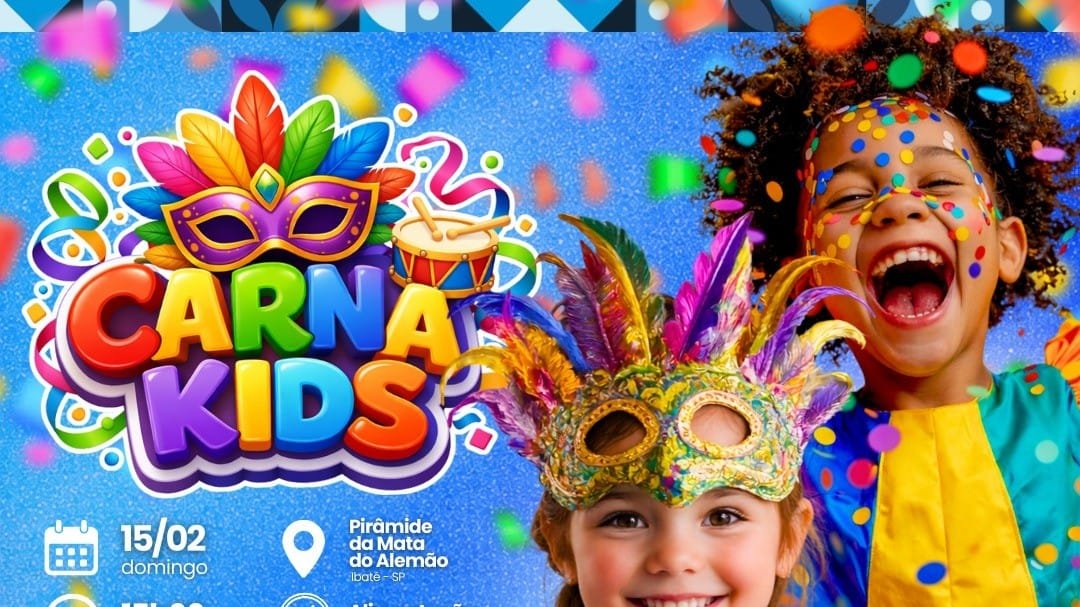 A Prefeitura de Ibaté, por meio da Secretaria Adjunta de Cultura e Turismo, promove no dia 15 de fevereiro (domingo) o CarnaKids, um evento especial pensado exclusivamente para a criançada. A festa acontece das 15h às 19h, na Pirâmide da Mata do Alemão, e promete uma tarde repleta de diversão, cores e muita animação.