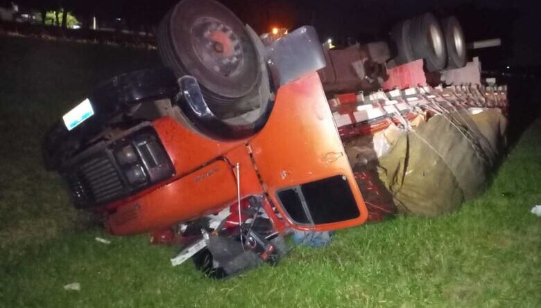 Caminhoneiro teria perdido o controle e veículo se imobilizou no canteiro central