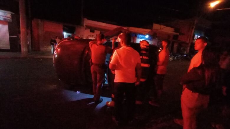 Um carro capotou no final da noite deste sábado (16), no bairro Jardim Cruzado, em Ibaté.