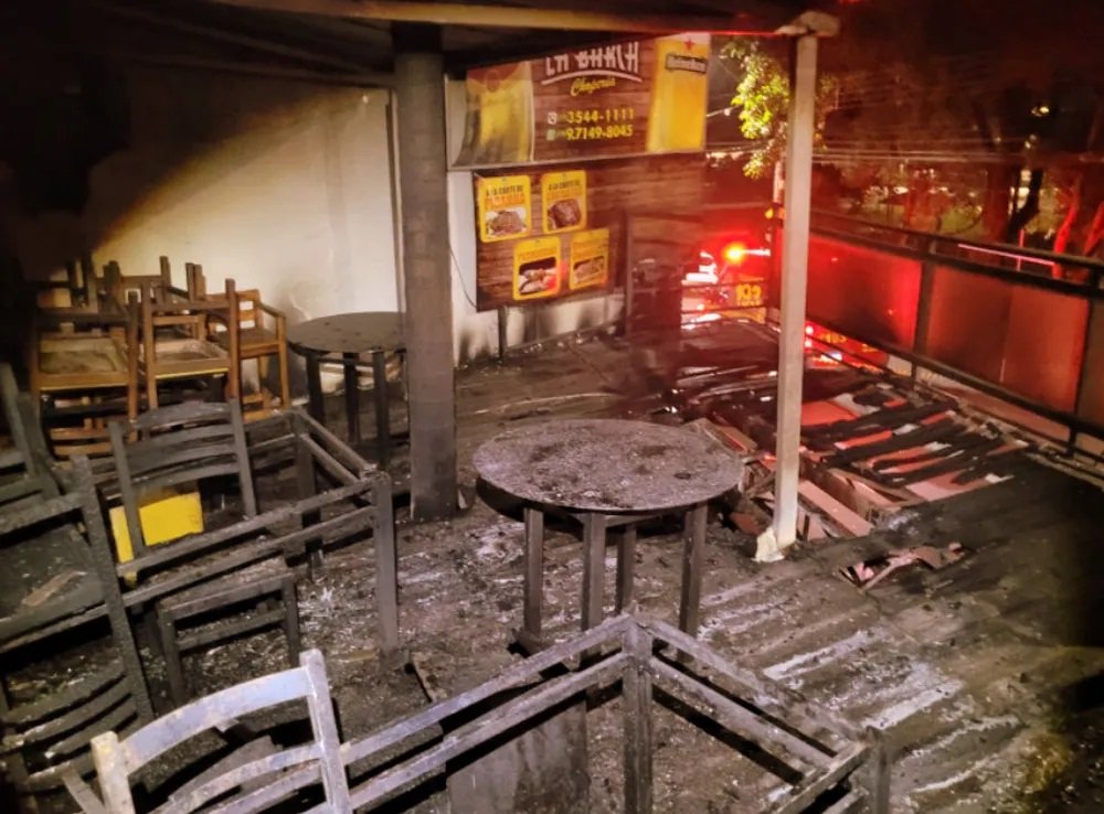 Fogo de grandes proporções atingiu choperia no Centro. Bombeiros levaram mais de três horas para controlar as chamas.