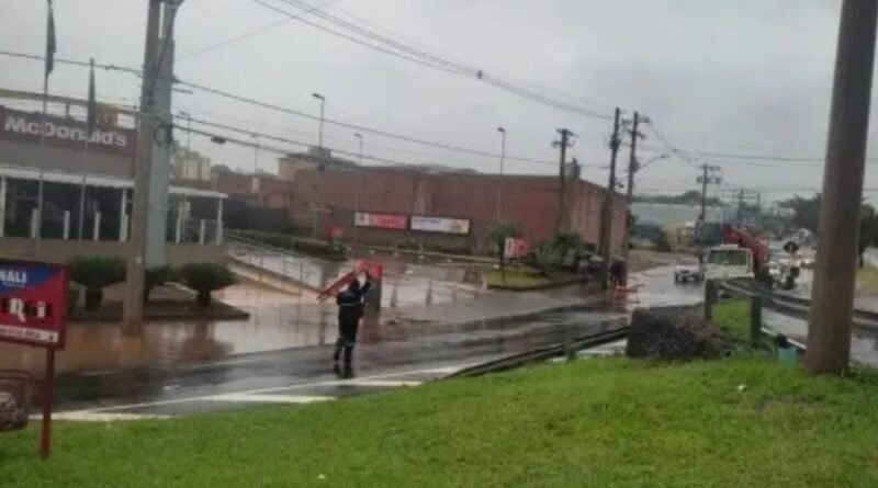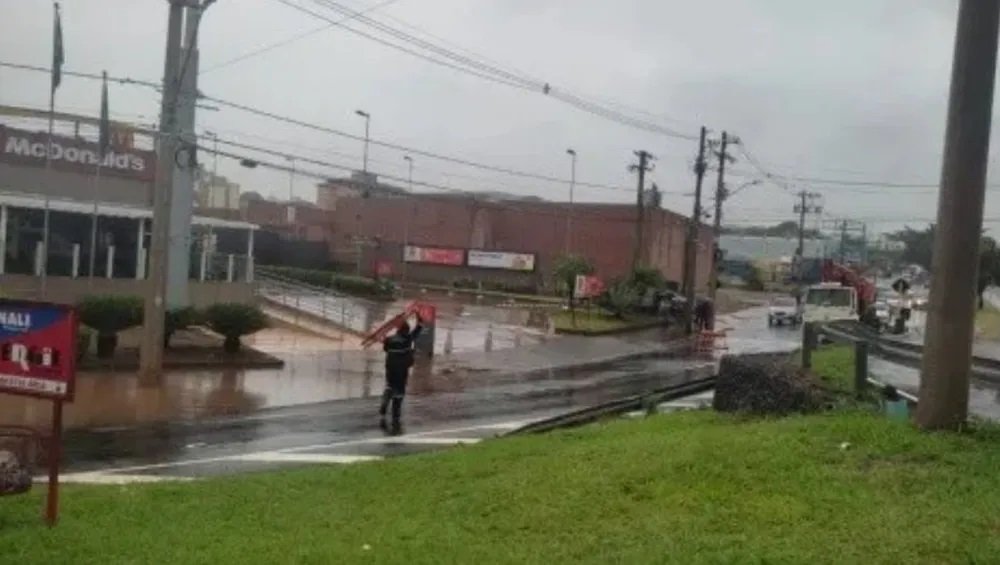 Segundo a Defesa Civil, o córrego do Mineirinho transbordou e alagou o entorno da rotatória por volta das 6h20.