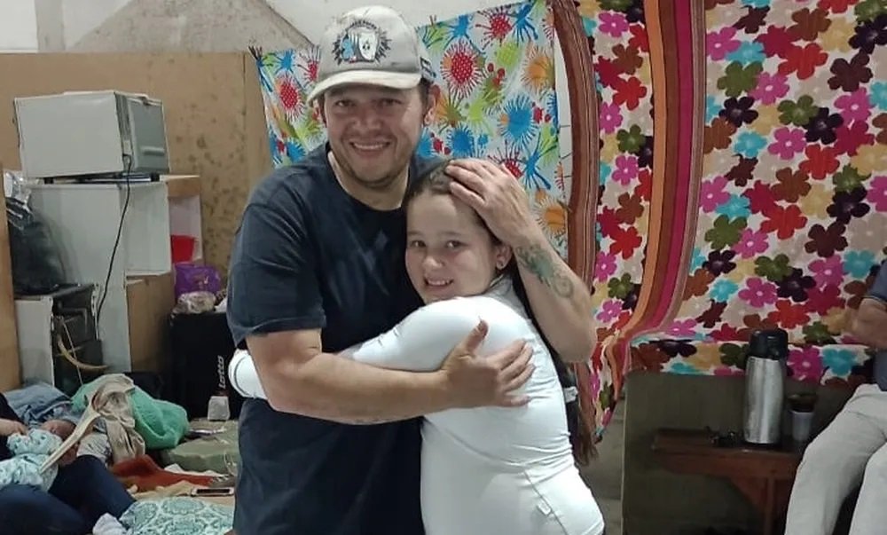 Ciclone no RS: pai e filha se reencontram em ginásio após três dias; ‘sempre que eu lembrava dele, chorava’