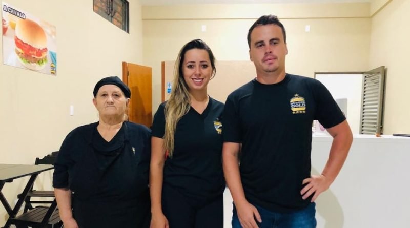 O casal Hugo e Suelen proprietários, convidam a todos para conhecerem as delícias da Burger Gold.