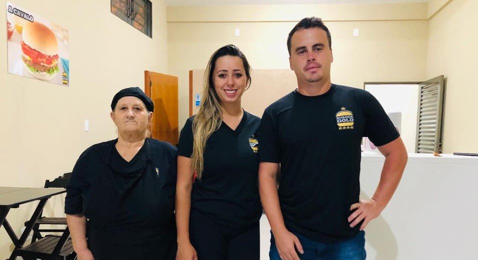 O casal Hugo e Suelen proprietários, convidam a todos para conhecerem as delícias da Burger Gold.