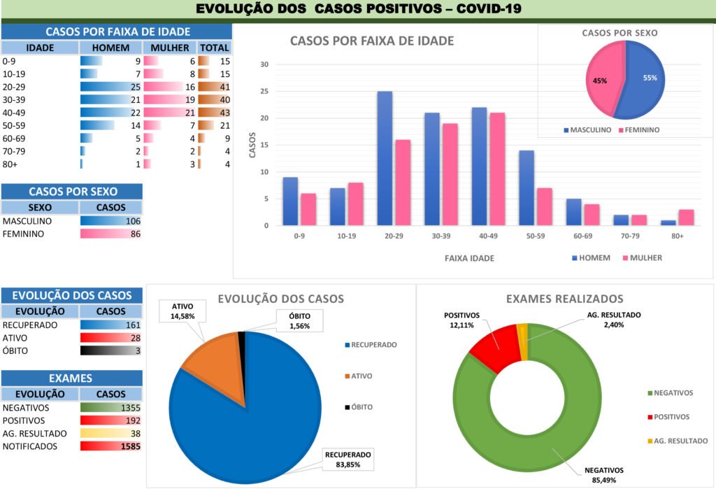 Número de recuperados continua crescendo no município e todos os casos ativos estão em isolamento domiciliar. Apenas 2,40% aguardam resultado para Covid-19